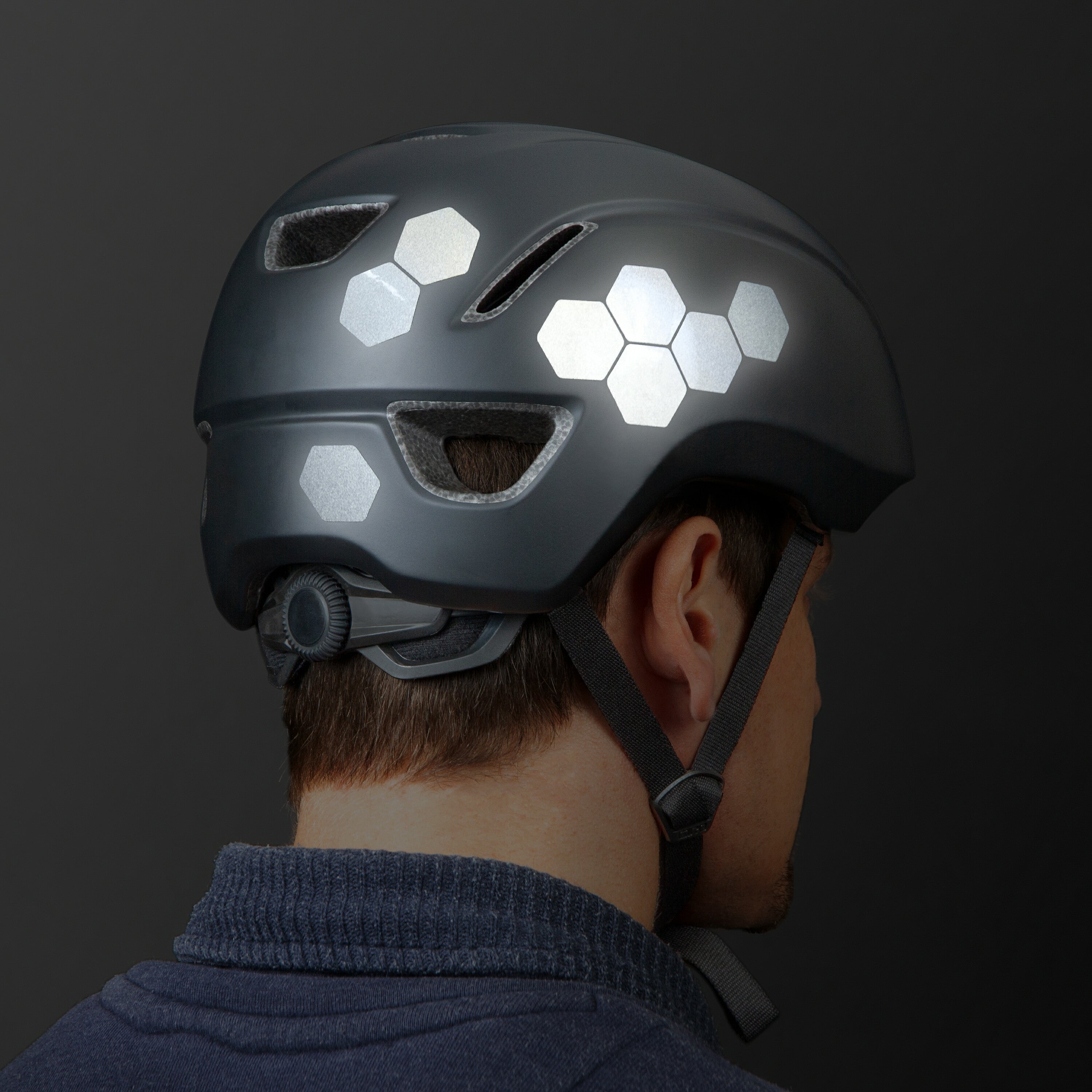 Die Luxshield® Reflektor-Sticker im Hexagon-Design erhöhen die Sichtbarkeit im Straßenverkehr bei Dunkelheit und schlechter Sicht deutlich, ohne das Erscheinungsbild des Bikes am Tag zu beeinträchtigen. Dank Retroreflektion wird auftreffendes Licht gezielt zur Lichtquelle zurückgeworfen: nachts hellweiß reflektierend, tagsüber dezent und unauffällig.