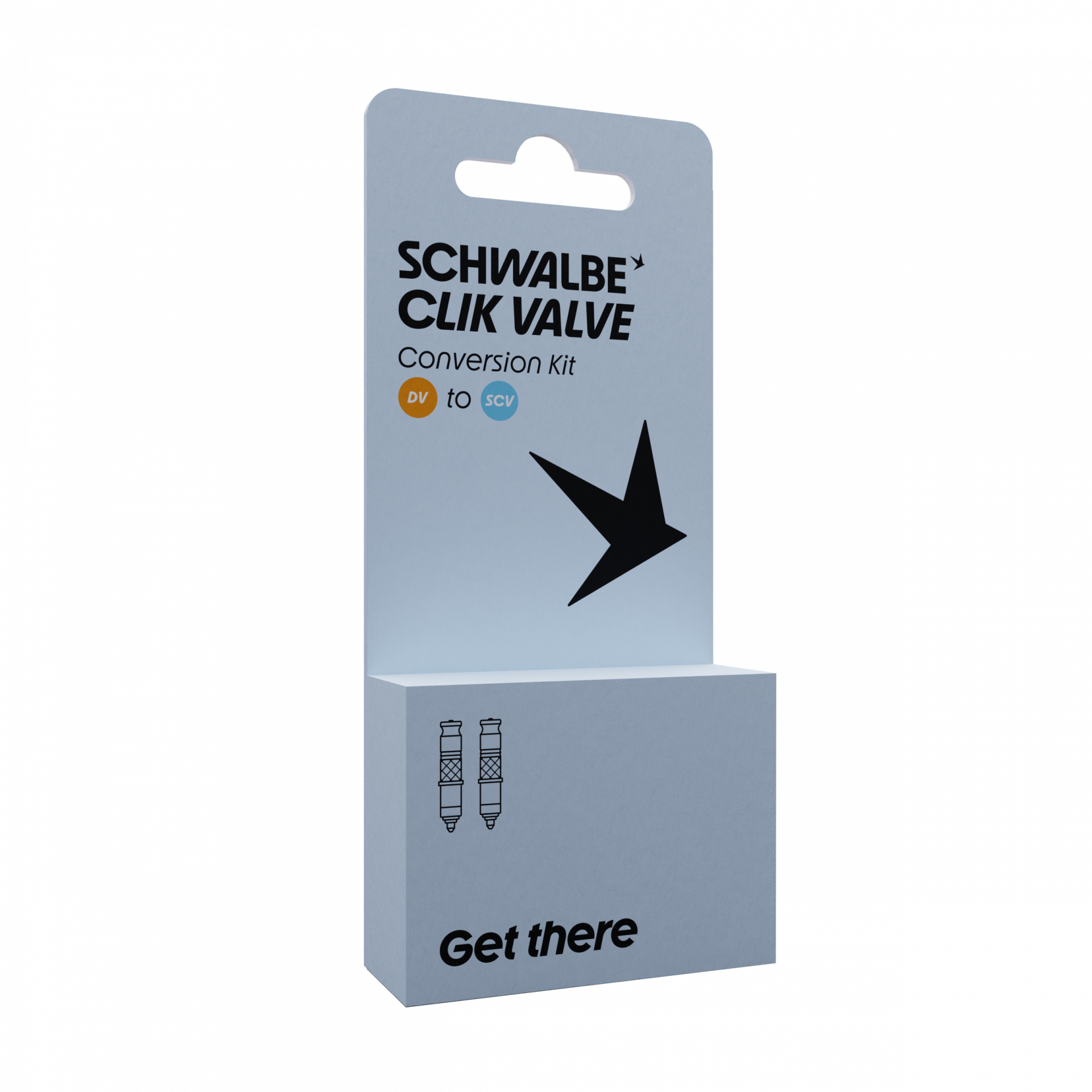 SCHWALBE Clik Valve Set DV – Ventil-Umrüstkit mit Pumpenkopf oder Adapter, SCV Klicksystem