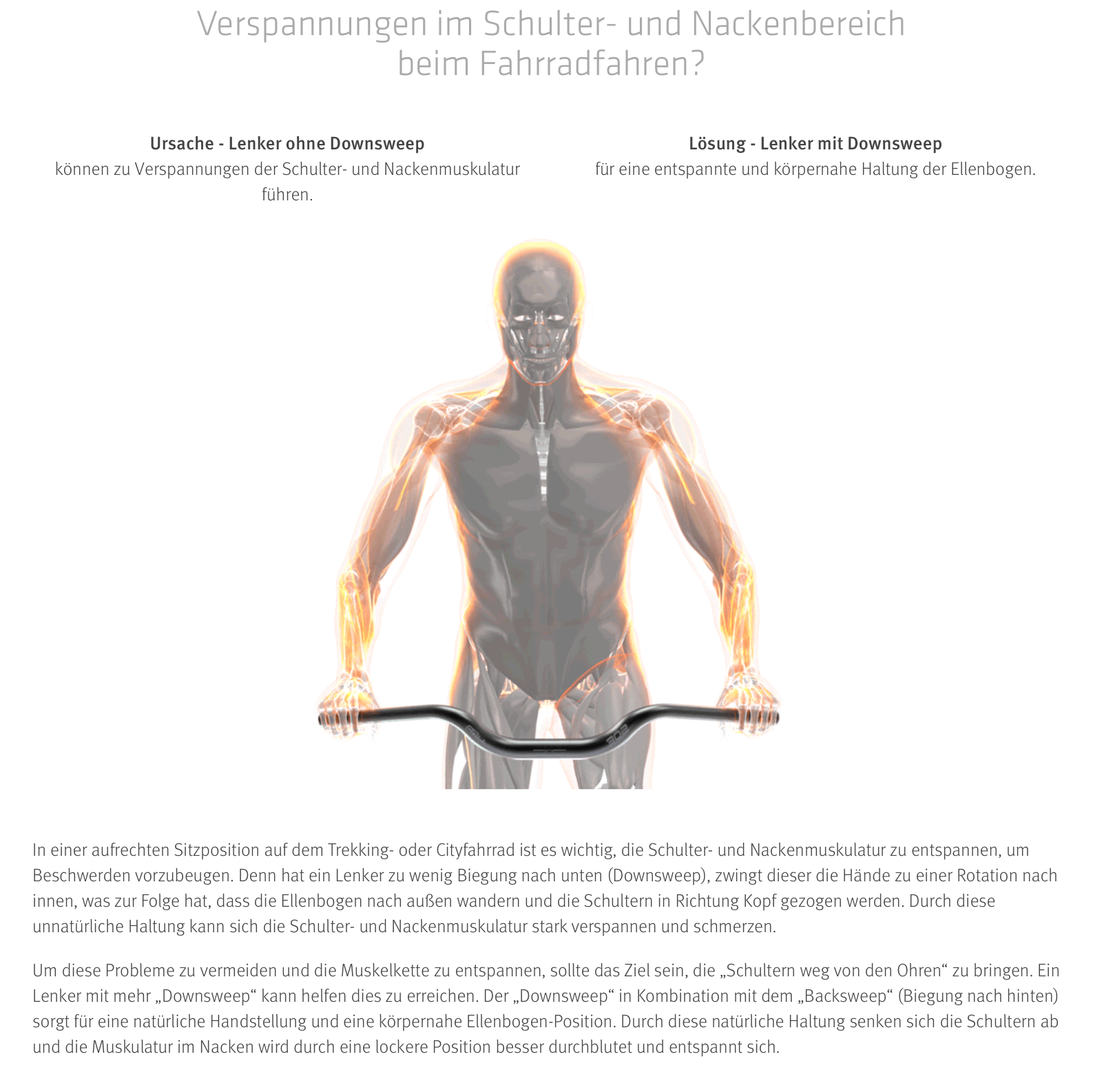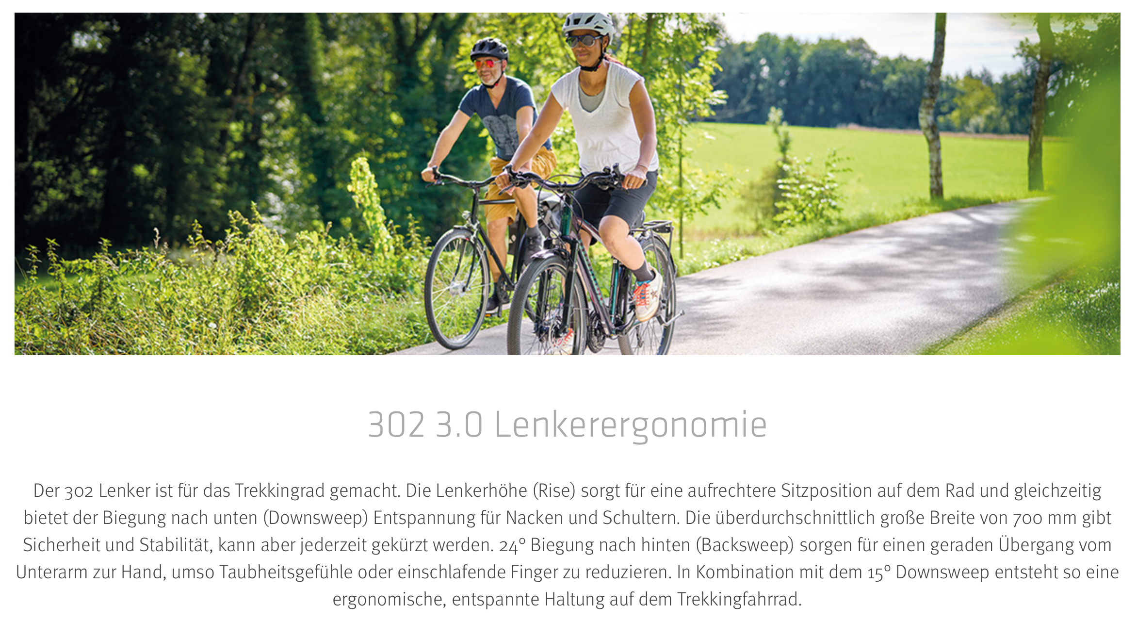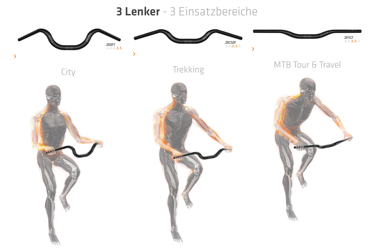 Ergonomischer Trekking-Lenker für aufrechte Sitzposition und entspannte Schultern.
