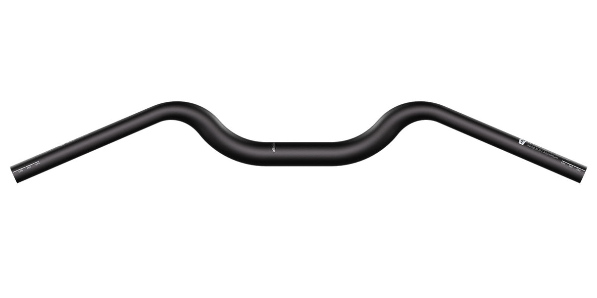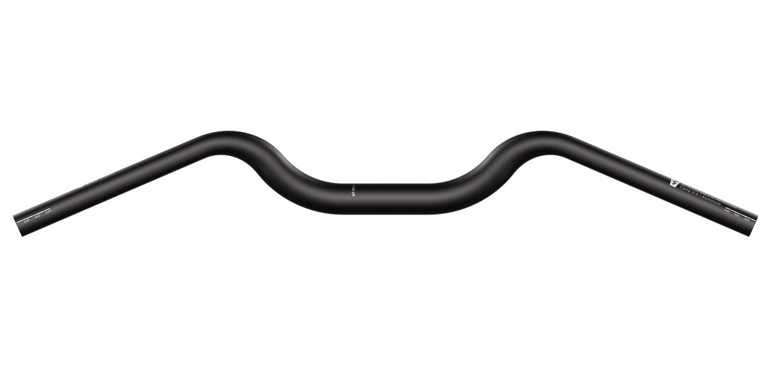 Die großzügige Breite von 700 mm sorgt für Fahrstabilität und Kontrolle; bei Bedarf kann der Lenker auf bis zu 640 mm gekürzt werden. Das ergonomische Konzept skaliert sinnvoll: Mit zunehmendem Rise wachsen Back- und Downsweep mit, sodass auch bei aufrechterer Sitzposition die Handgelenkstellung natürlich bleibt.