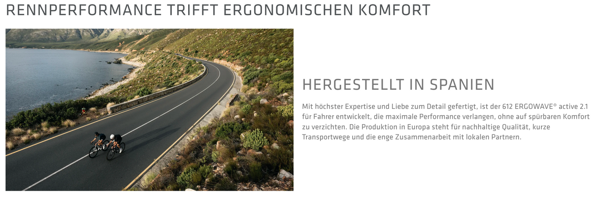 Im Unterschied zur active-Variante verzichtet der 612 ERGOWAVE® 2.1 bewusst auf die active-Technologie. Dadurch entsteht ein unmittelbares Feedback vom Fahrrad, das besonders sportlich orientierte Rennrad- und XC-Fahrer schätzen. Das SQlab-Sattelbreitenkonzept ermöglicht zudem die Auswahl der passenden Breite entsprechend dem individuellen Sitzknochenabstand – ein entscheidender Faktor für Komfort und Leistung.
